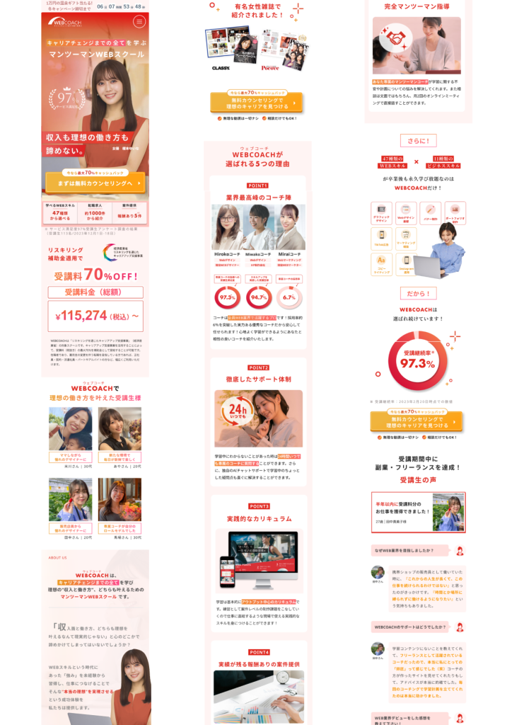ランディングページ制作 2026年1月14日 最終更新日時 : 2026年1月14日 narita 【製作時間】20時間【使用ソフト】Photoshop・illustrator・Figma・HTML・CSS・jquery【担当業務】デザイン・実装【意識した亊】スクロール離脱を防ぐためjqueryで動きをつけたLPを作成しました。